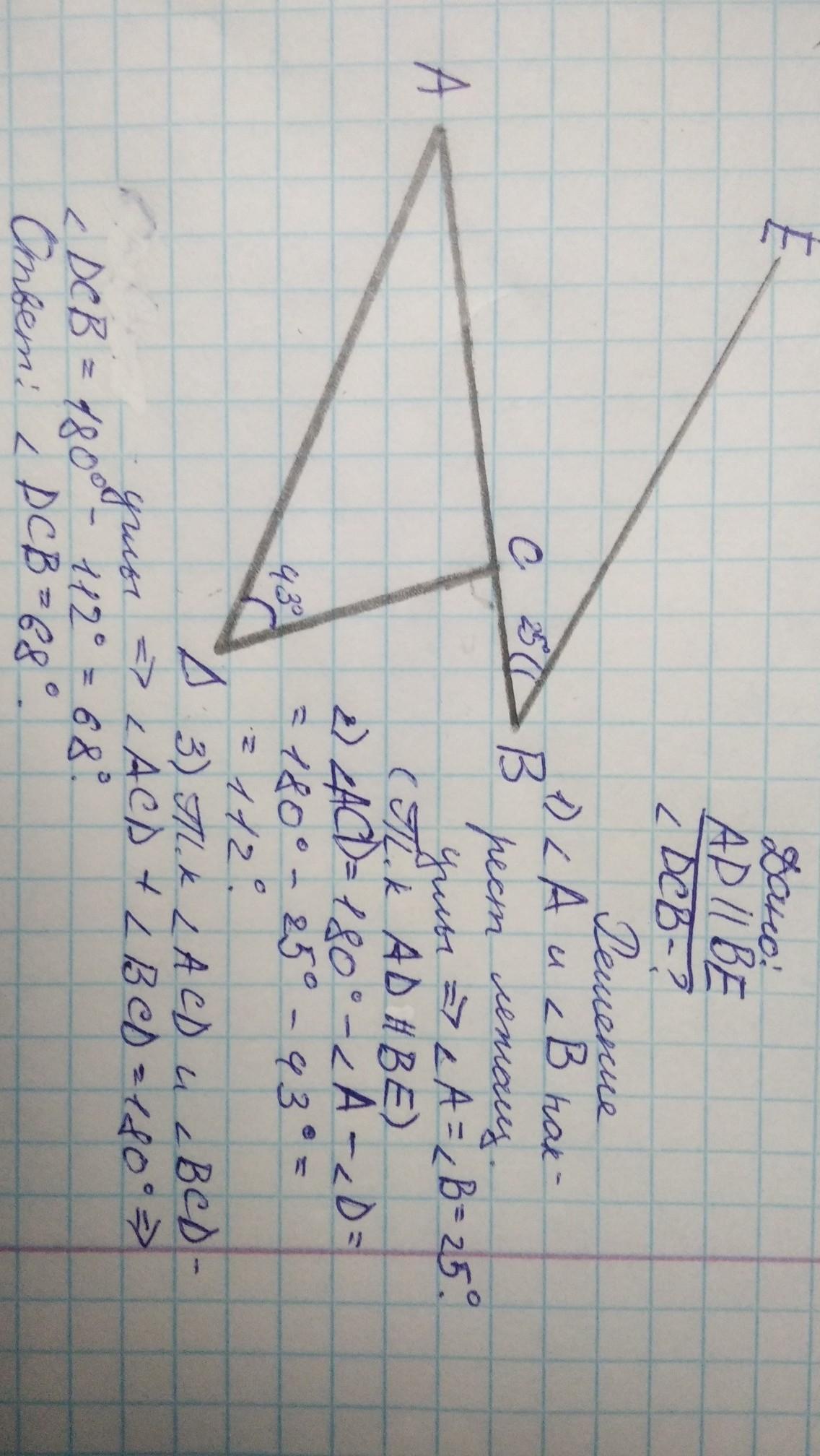 <DCB=180°-(47°+65°)=68°