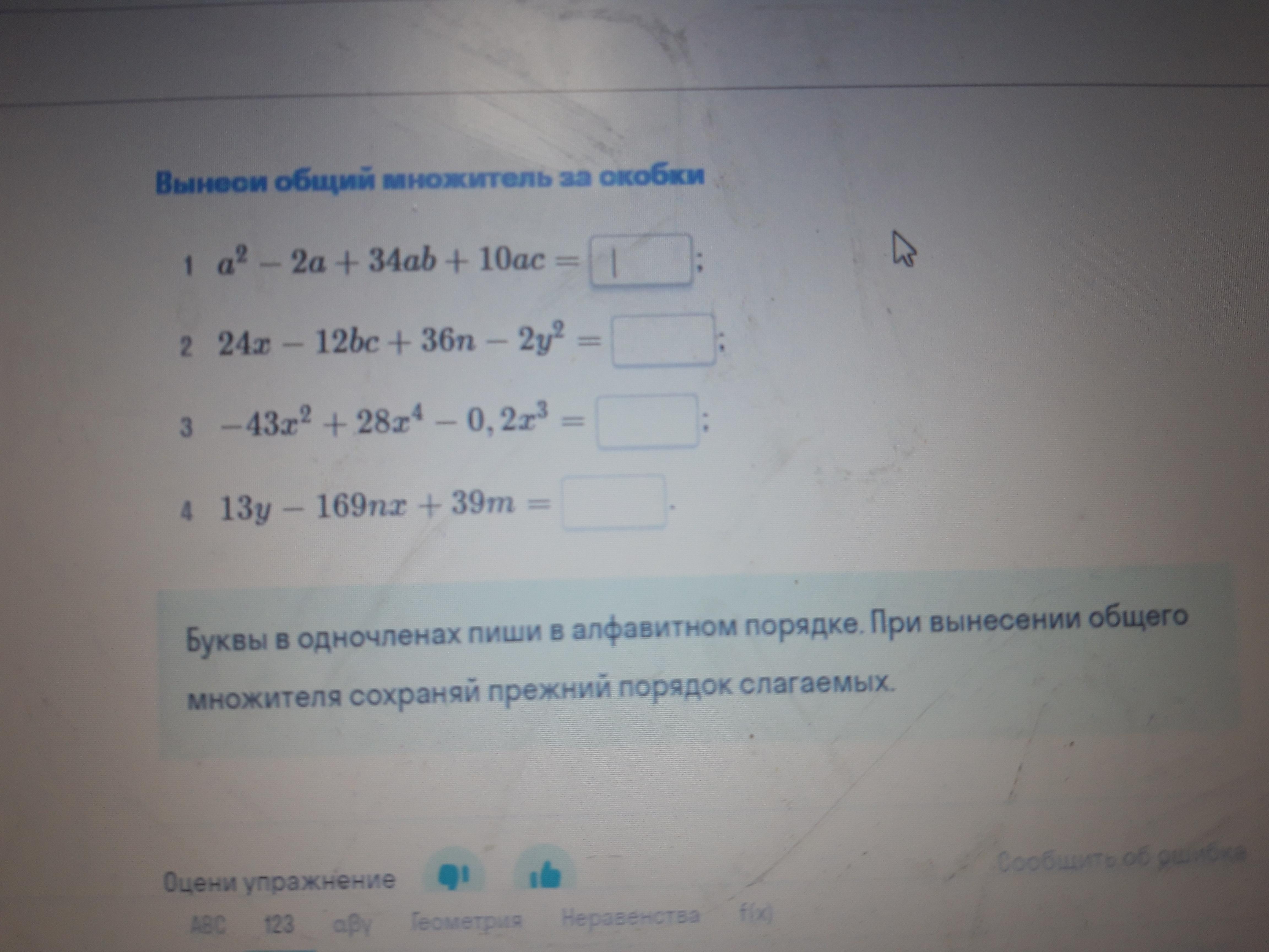 1. a²-2a+34ab+10ac=a(a-2+34b+10c)