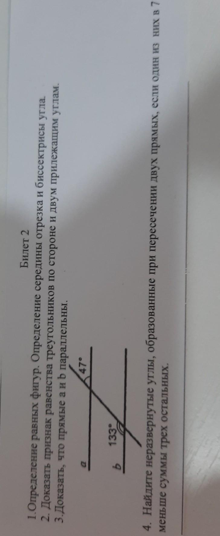Это не нужно, но напишу введем обозначение углов <47° =<1 угол который лежит по диагонали с ним <2 а <133° = <3 ( так легче будет работать)