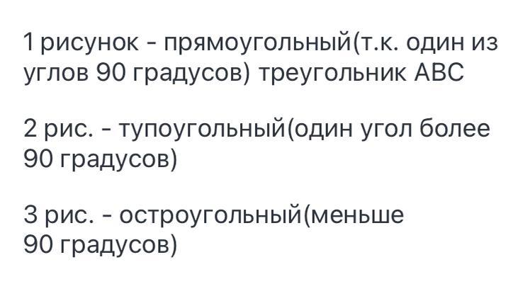 1 рисунок - прямоугольный(т.к. один из углов 90 градусов) треугольник АВС