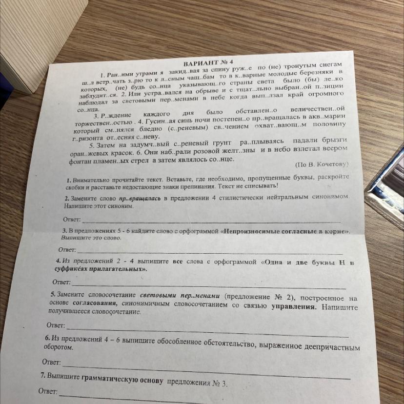 2. Замените слово пр..вращалась в предложении 4 стилистически нейтральным синонимом