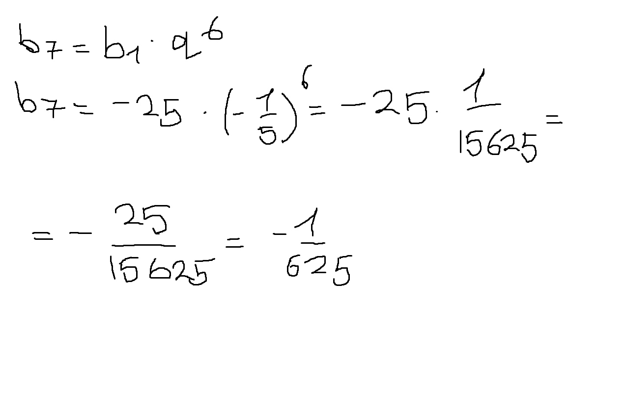 b7=b1*q^6 = -25*(-1/5)^6=-25*1/15625=-25/15625=-1/625