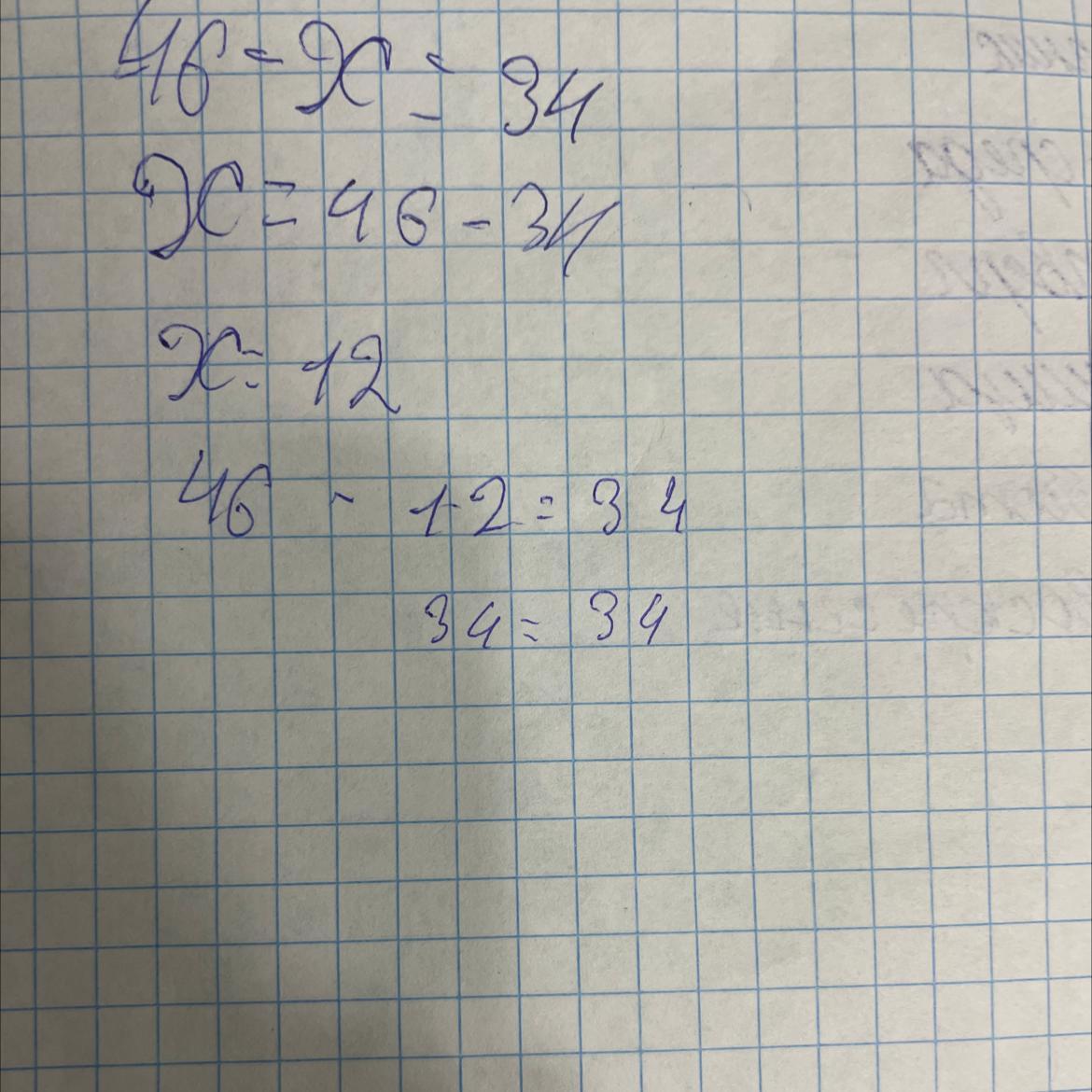 Вот ПРАВИЛЬНО это просто тебя надо было 46-34=12 потом 34+12=46