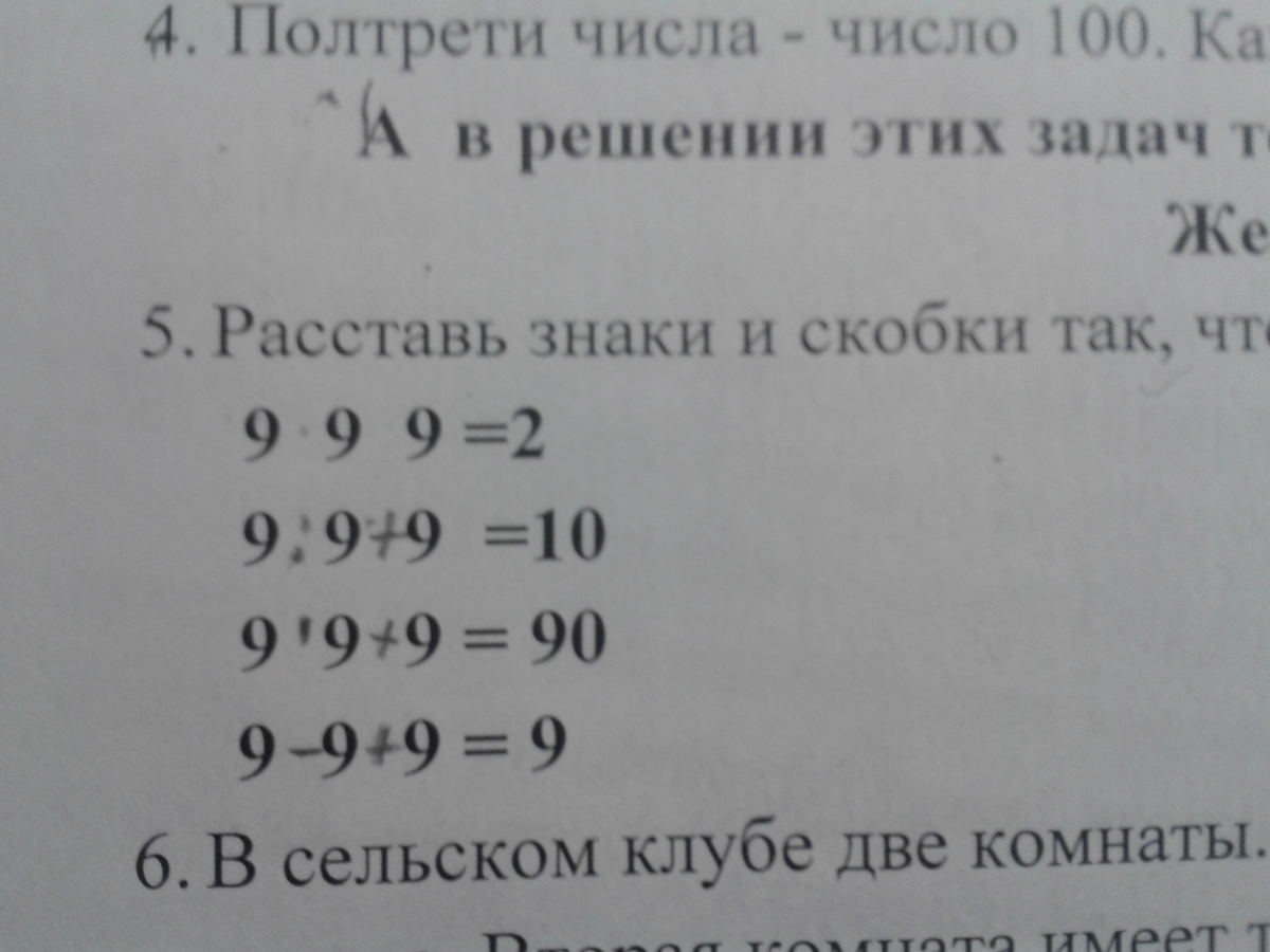 расставь знаки и скобки так ,что бы получились верные равенства.