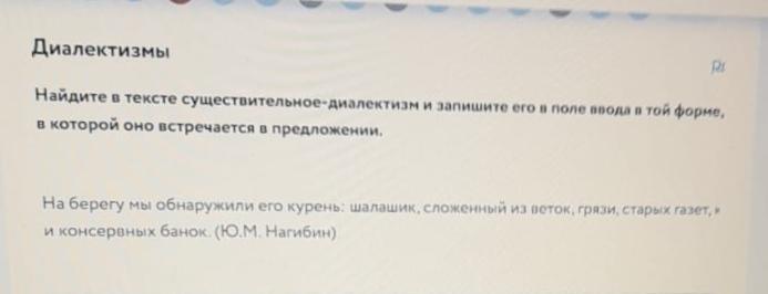 Найдите в тексте существительное-диалектизм и запишите его в поле ввода в той форме, в которой оно встречается в предложении.