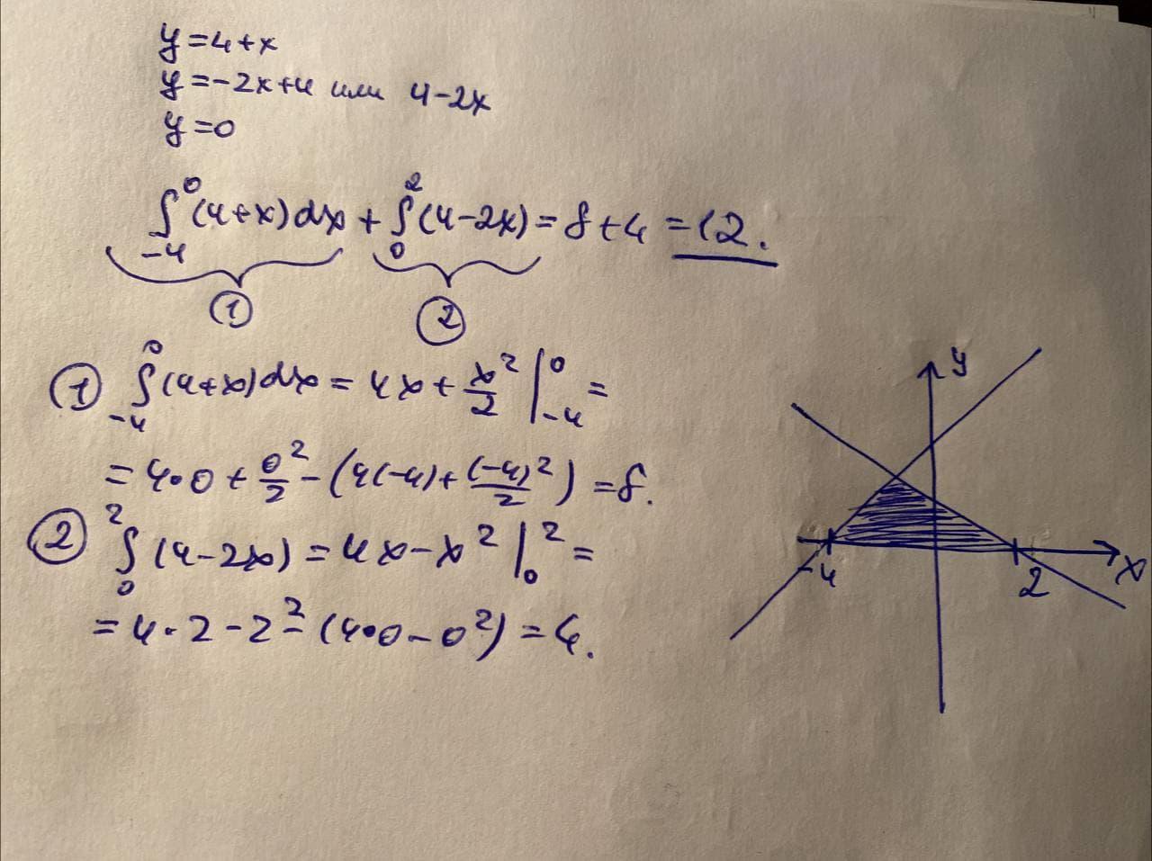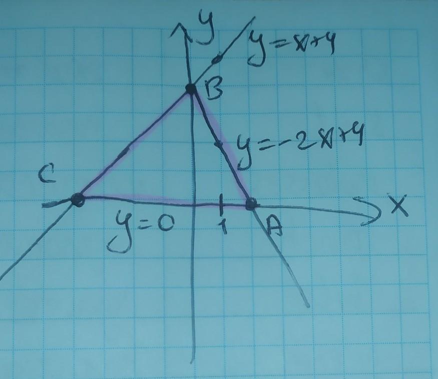 Нарисуем графики данных прямых, получаем треугольник АВС.