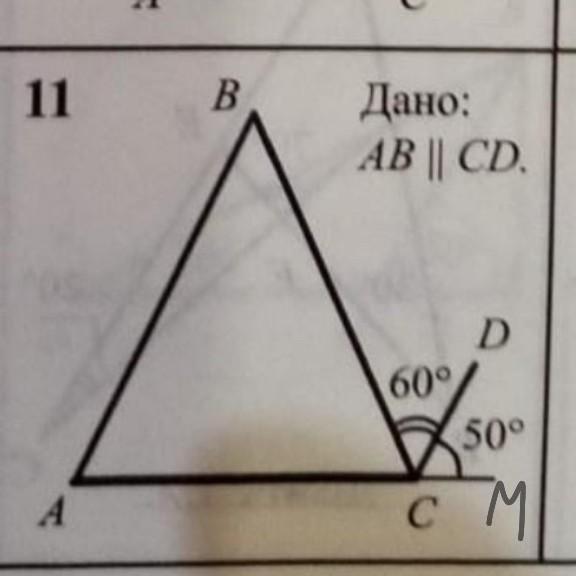 ∠A = ∠DCM = 50°(т.к. соответственные)
