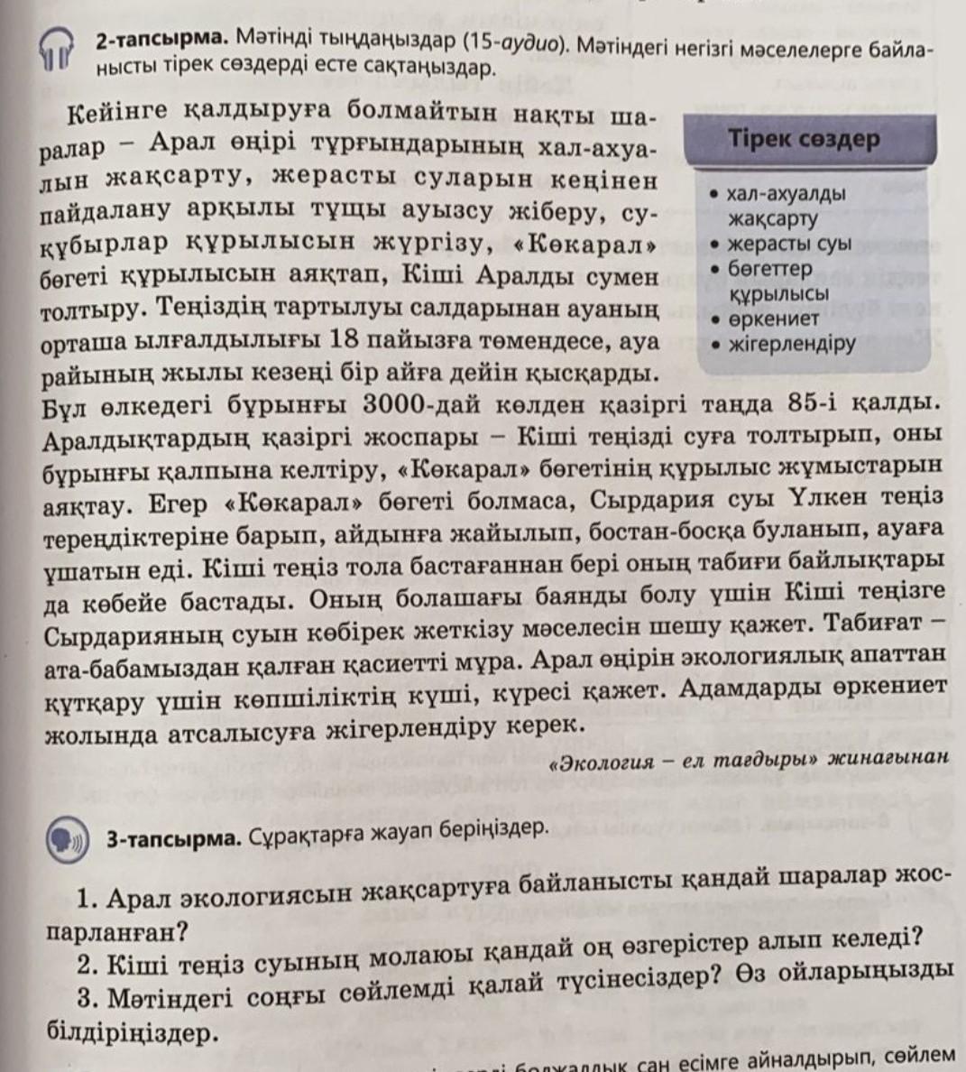 2:Кіші теңіз тола бастағаннан бері оның табиғи байлықтары да көбейе бастады.