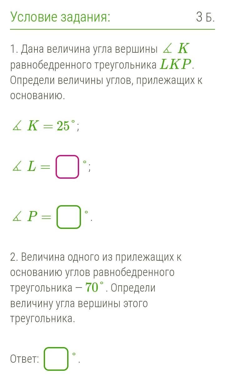 2. Углы при основании равны. Значит 70+70=140, 180-140=40.