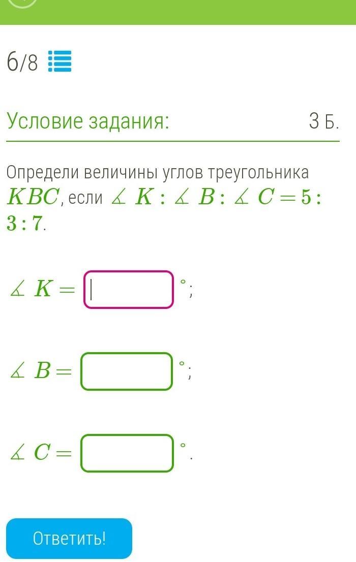 Так как углы относятся как 5:3:7, то можно составить уравнение: