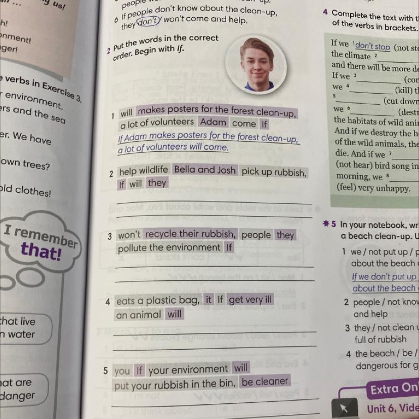2. If Bella and Josh pick up rubbish, they will help wildlife.