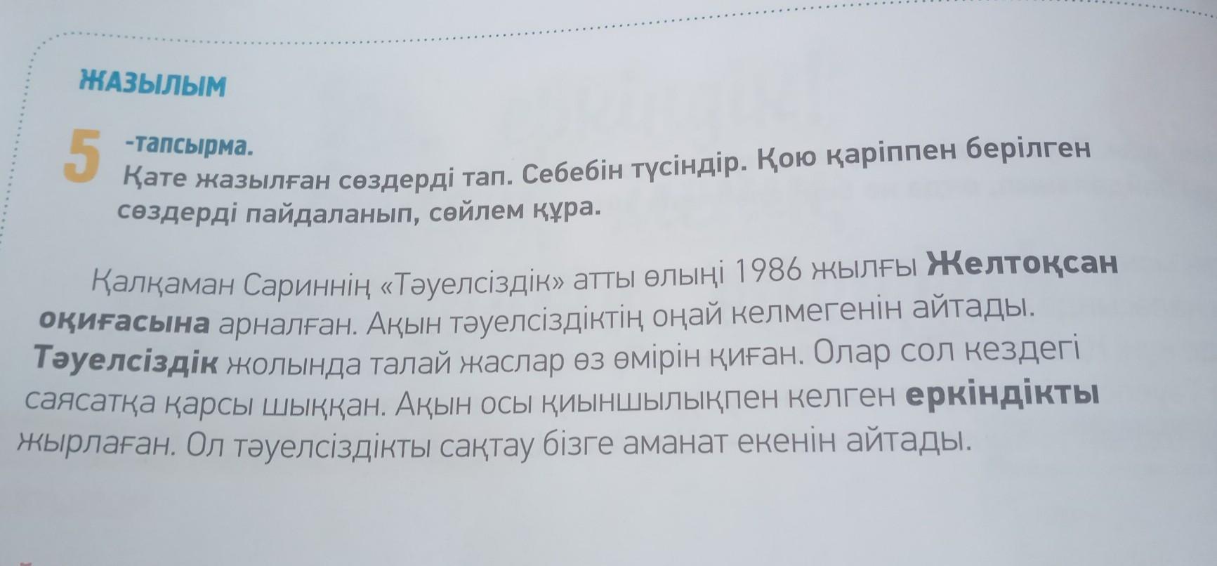 (ПРЕДЛОЖЕНИЕ НА СЛОВОСОЧЕТАНИЕ):1.Желтоқсан оқиғасында көптеген қазақ азаматтары тәуелсіздік аламыз деп,құрбан болды.