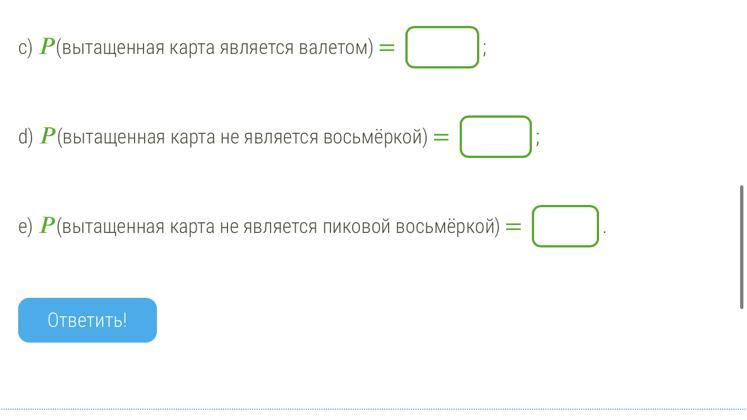 в комплекте игральных карт-52 есть карты 2,3,4,5,6,7,8,9,10 наугад вытаскивается одна карта