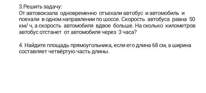 На сколько км автобус отстанет от автомобиле через 3 ч - ? км