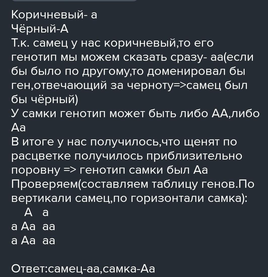 срочно даю 40баллов біологія! у собак чорний колір домінує над коричневим коричнева самка від чорного самця принесла 11 чорних щенят.що можна сказати про генотип усіх згаданих тварин? срочно помогите