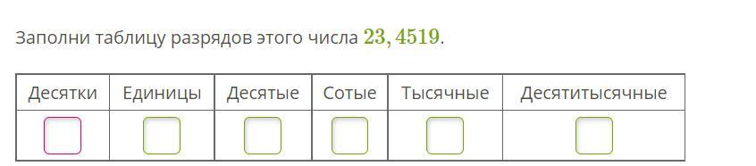 Десятки 2, единицы 3, десятые 4, сотые 5, тычячные 1, десятитысячные 9.