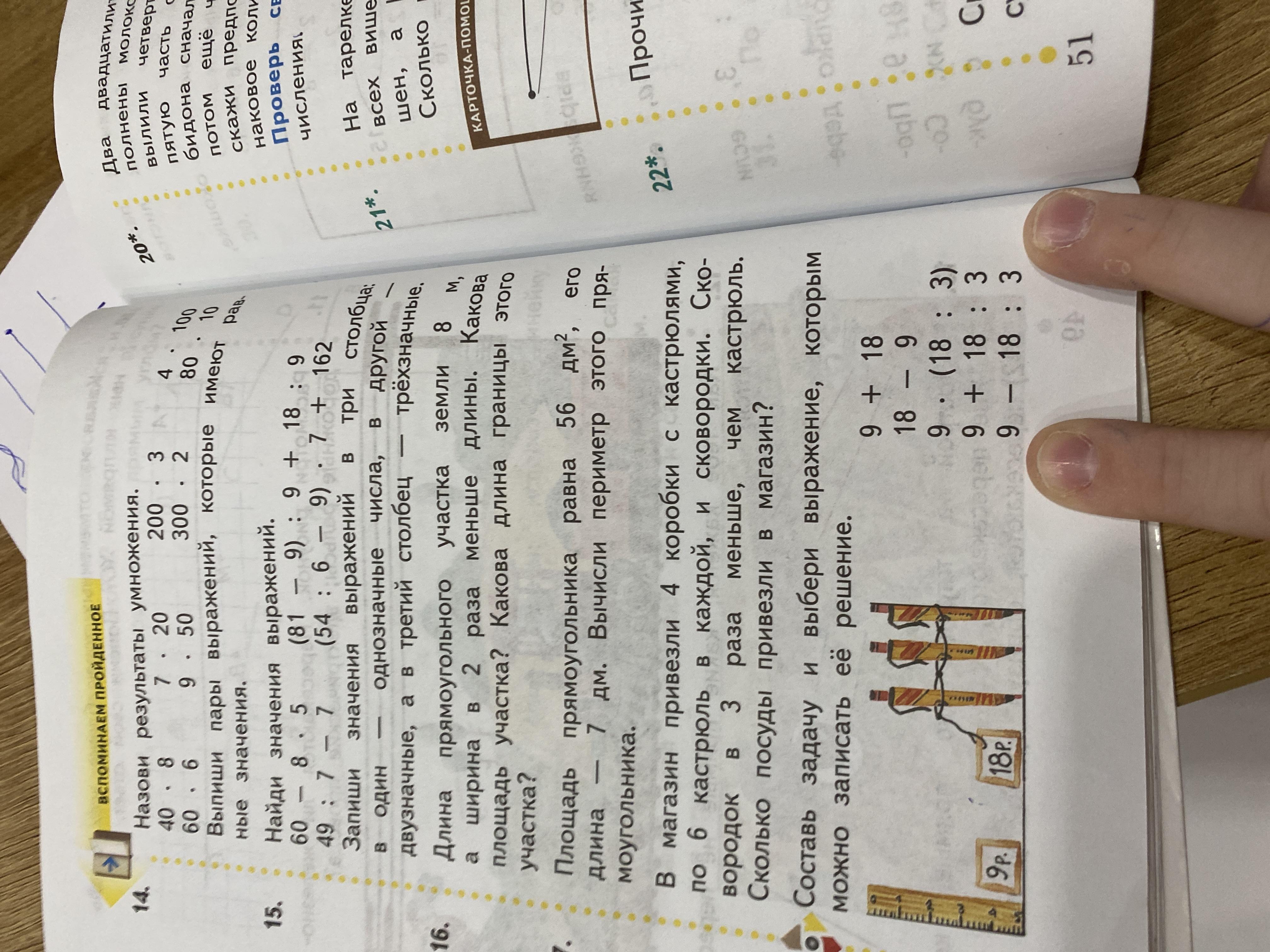 Помогите с заданием математика 3 класс страница 50 упражнение 18 краткую запись и решение