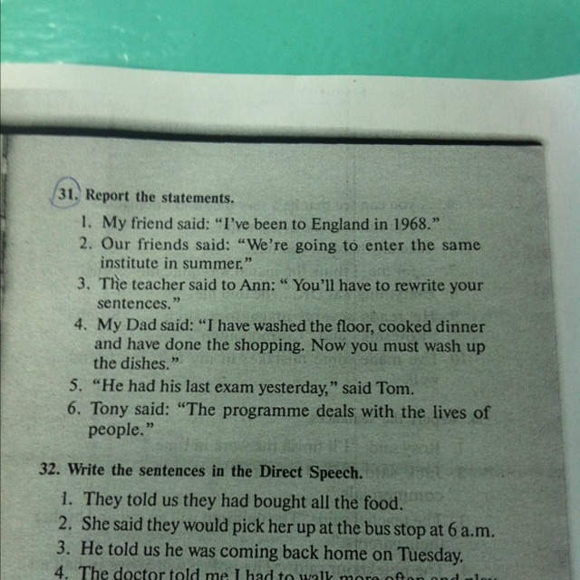 4. My Dad said that he had washed the floor, cooked dinner and had done the shopping. He added that I must was up the dishes then.