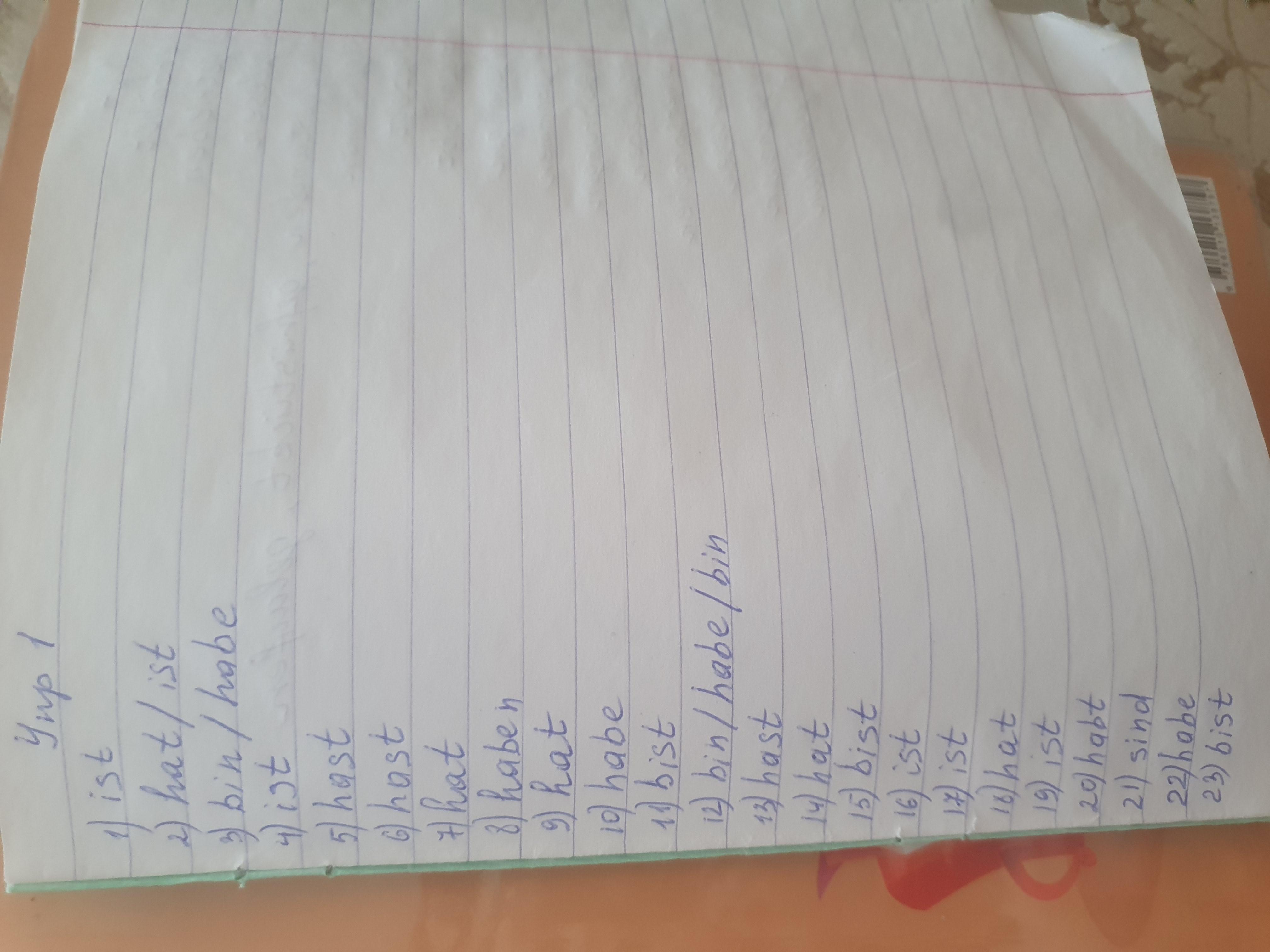 3. Nur … heute zu Hause geblieben, denn ich … meine Hausaufgaben noch nicht gemacht.