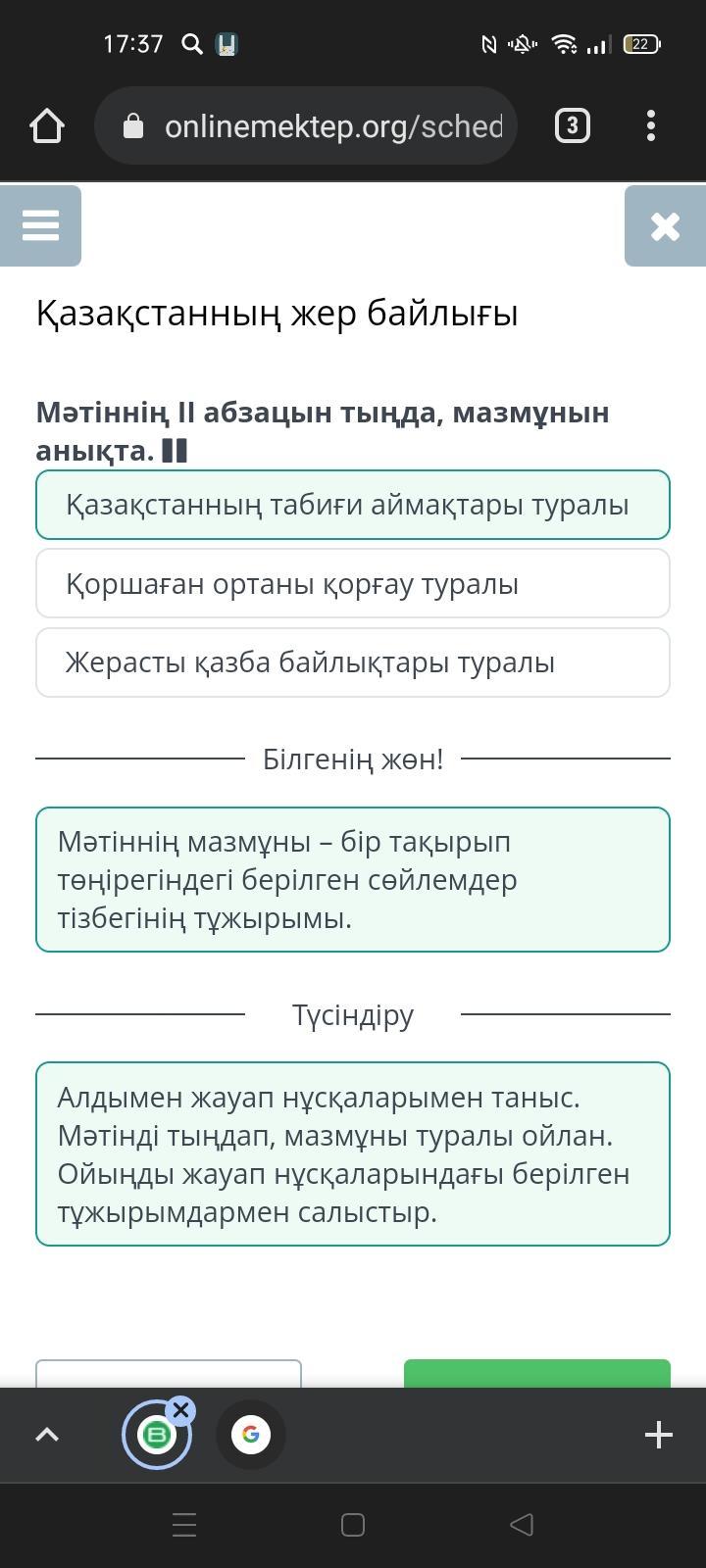 Қазақстанның жер байлығы Мәтіннің ІІ абзацын тыңда, мазмұнын анықта. 4) Жерасты қазба байлықтары туралы Қоршаған ортаны қорғау туралы Қазақстанның табиғи аймақтары туралы Артқа