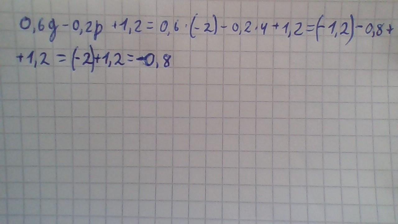 0,6g−0,2p+1,2=0,6*(-2)-0,2*4+1,2=-1,2-0,8+1,2=-2+1,2=-0,8