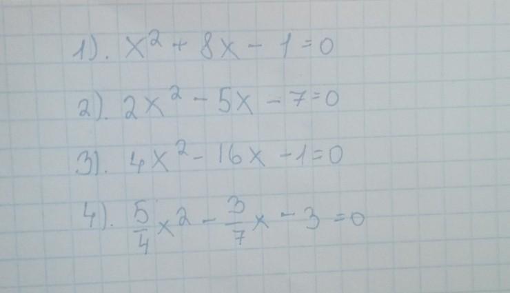 1) х² + 8х - 1 = 0