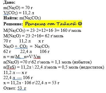 найдите массу соли которая образуется при взаимодействии 70 г оксида натрия и 11,2л оксида углерода(4)
