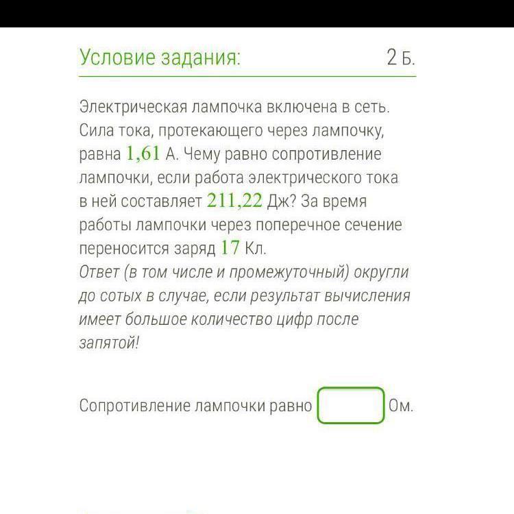 R = 211,22 Дж / (17 Кл * 1,61 А) = 7,72 Ом