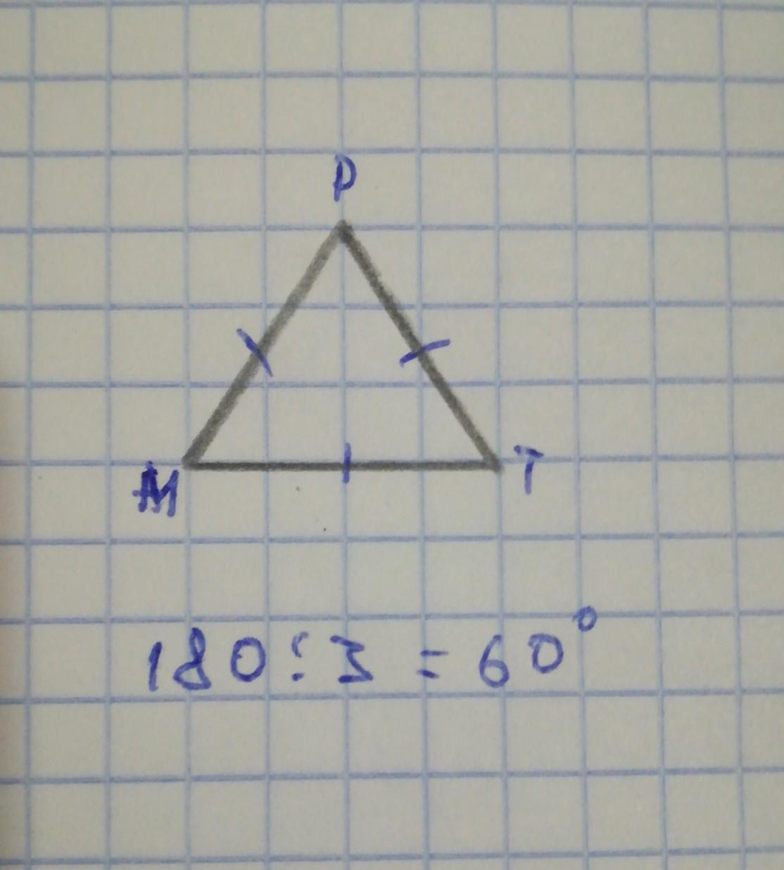 Значит, мы 180 делим на 3, и получаем 60. Значит, каждый из углов равен 60 градусов.
