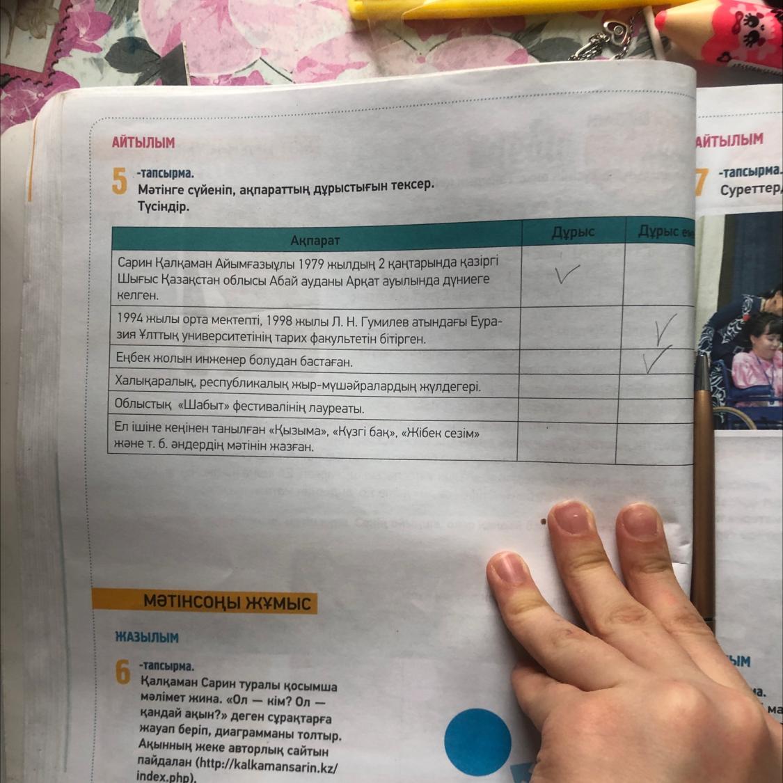 Мәтінге сүйеніп, ақпараттың дұрыстығын тексер.