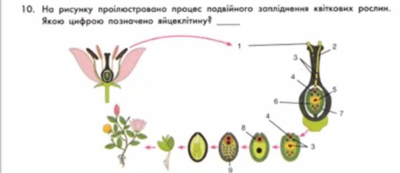 на рисунку проілюстровано процес подвійного запилення квіткових рослин якою цифрою позначено яйцеклітину
