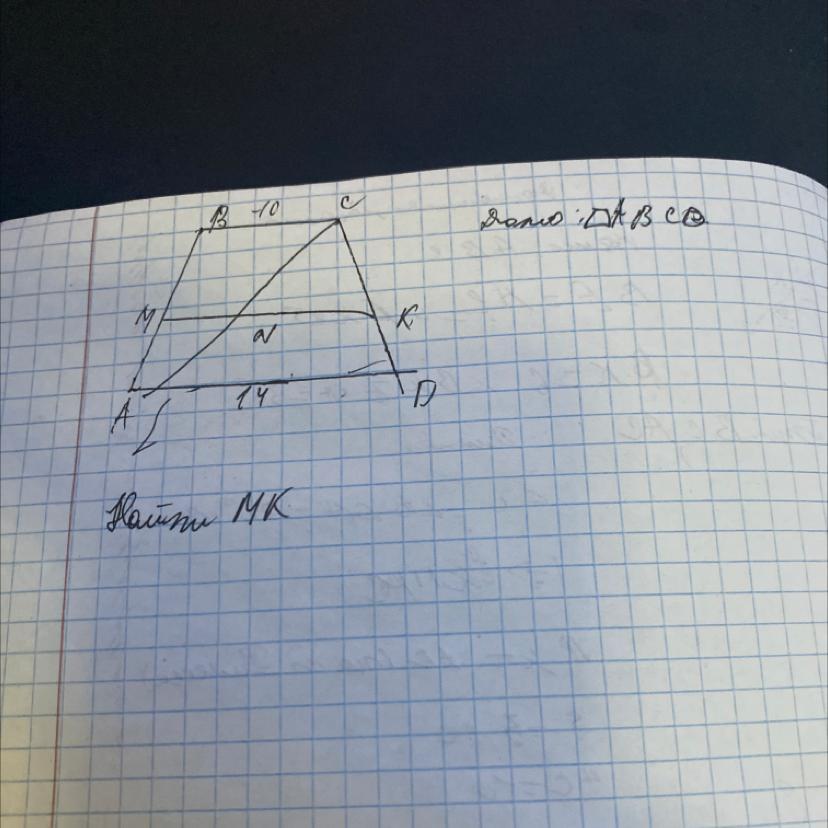 Мк-середня лінія, то MK=BC+AD/2=10+14/2=12