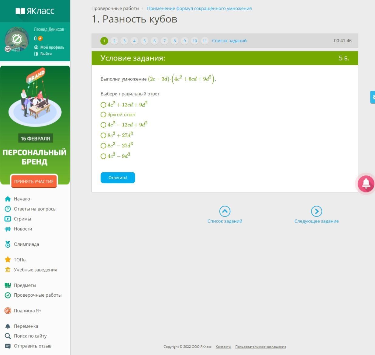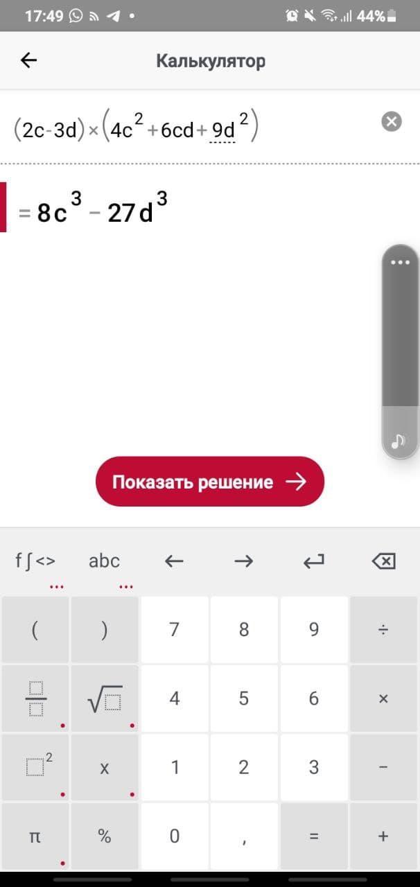 (2с-3d)(4c²+6cd+9d²)=(2с)³-(3d)³=8c³-27d³