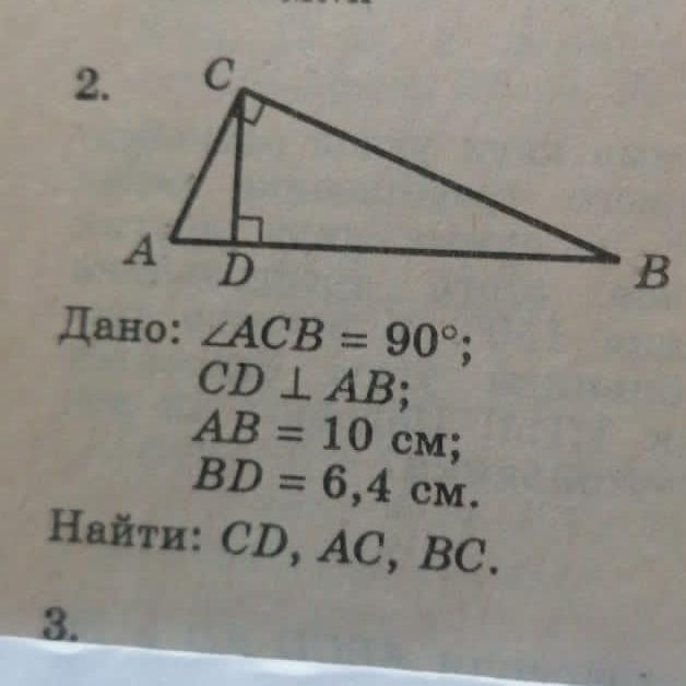 CD=√(AD*DB)=√(3,6*6,4)=4,8см