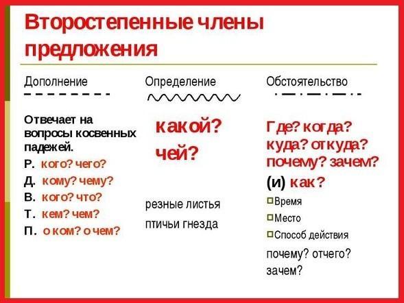 Солнце ( подлежащее ), посылает ( сказуемое ), на землю ( обстоятельство ), яркие ( определение ), лучи ( дополнение ). Под ногами ( обстоятельство ), хрустит ( сказуемое ), снег ( подлежащее ). Дорога ( дополнение ), укатана ( сказуемое ), санями ( подлежащее ). Небо ( дополнение ), над землёй ( обстоятельство ), стоит ( сказуемое ), чистое и высокое ( определение ). В лесных ( определение ), ручьях ( обстоятельство ), течёт ( сказуемое ), светлая и прозрачная ( определение ), вода ( дополнение ). На дне ( обстоятельство ), ручьёв ( определение ), виднеются ( сказуемое ), сухие ( определение ), листочки и травинки ( дополнение )