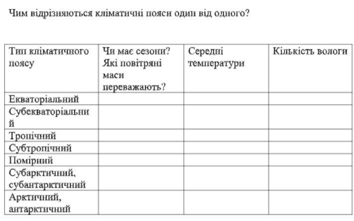 У субтропічних поясах клімат формується під впливом сезонної зміни повітряних мас: влітку – тропічних, взимку – помірних. Континентальний субтропічний клімат – сухий, з жарким літом, прохолодною зимою. На західних узбережжях материків клімат субтропічний середземноморський з жарким, сухим літом і м’якою вологою зимою. На східних узбережжях клімат мусонний (літо жарке, вологе, зима прохолодна, суха). В глибині материка клімат різко континентальний (прохолодне літо, сувора зима, небагато опадів).