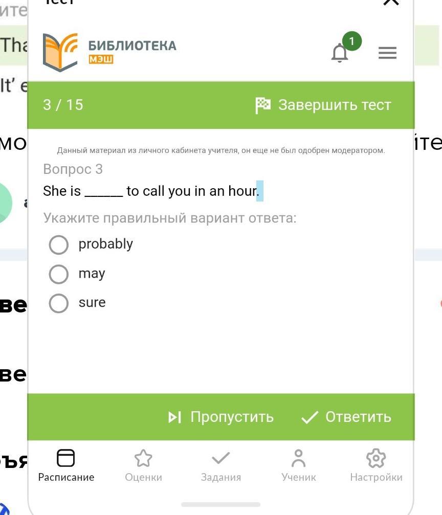В конце есть фраза— in an hour(через час) что говорит о 100% уверенности; при увереном ответе употребляется sure, definitely.