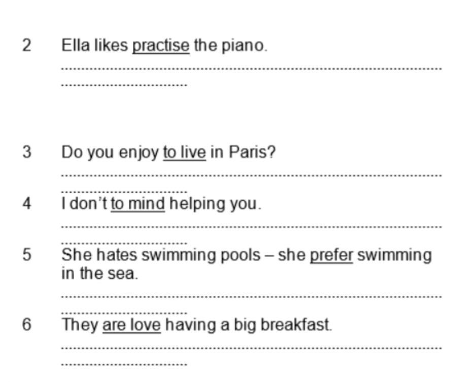 1-stand, 2-practising, 3-living, 4-mind, 5-prefers, 6-love