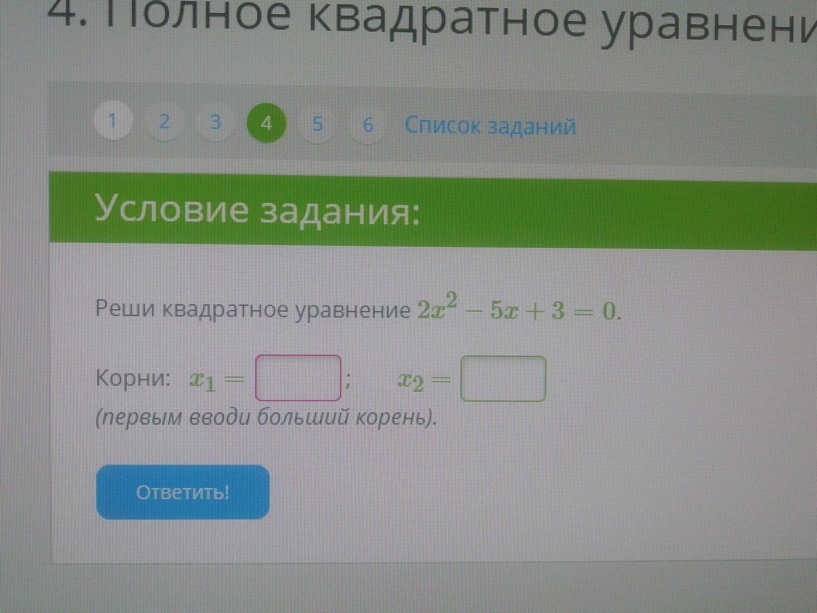 Корни записаны в порядке убывания