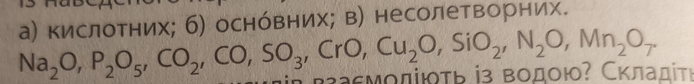 Із наведеного переліку випишіть в окремі стовпчики формули оксидів: а) кислотних; б) основних; в) несолетворних.