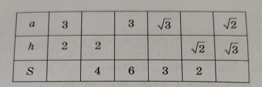 Пусть S площадь треугольника a основание h высота проведённая к основанию Заполните следующую таблицу