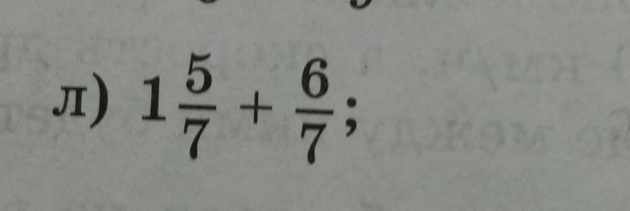1 \frac{5}{7}  +  \frac{6}{7}  =  \frac{4 + 5}{4}  +  \frac{6}{7}  =  \frac{9}{4}  +  \frac{6}{7}  =  \frac{63}{28}  +  \frac{24}{28}  =  \frac{63 + 24}{28}  =  \frac{87}{28  }  = 3 \frac{3}{28}