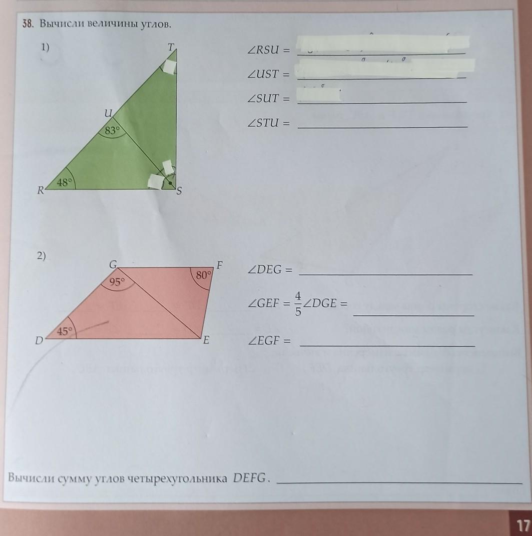 Сумма углов треугольника DEGF.