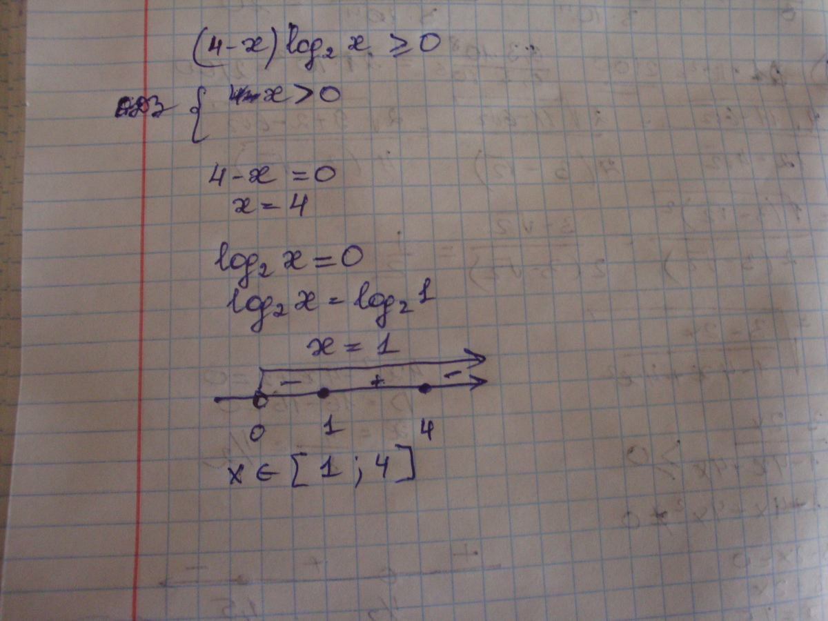 точки перехода через 0 - 4 и 1 (log2x=0)