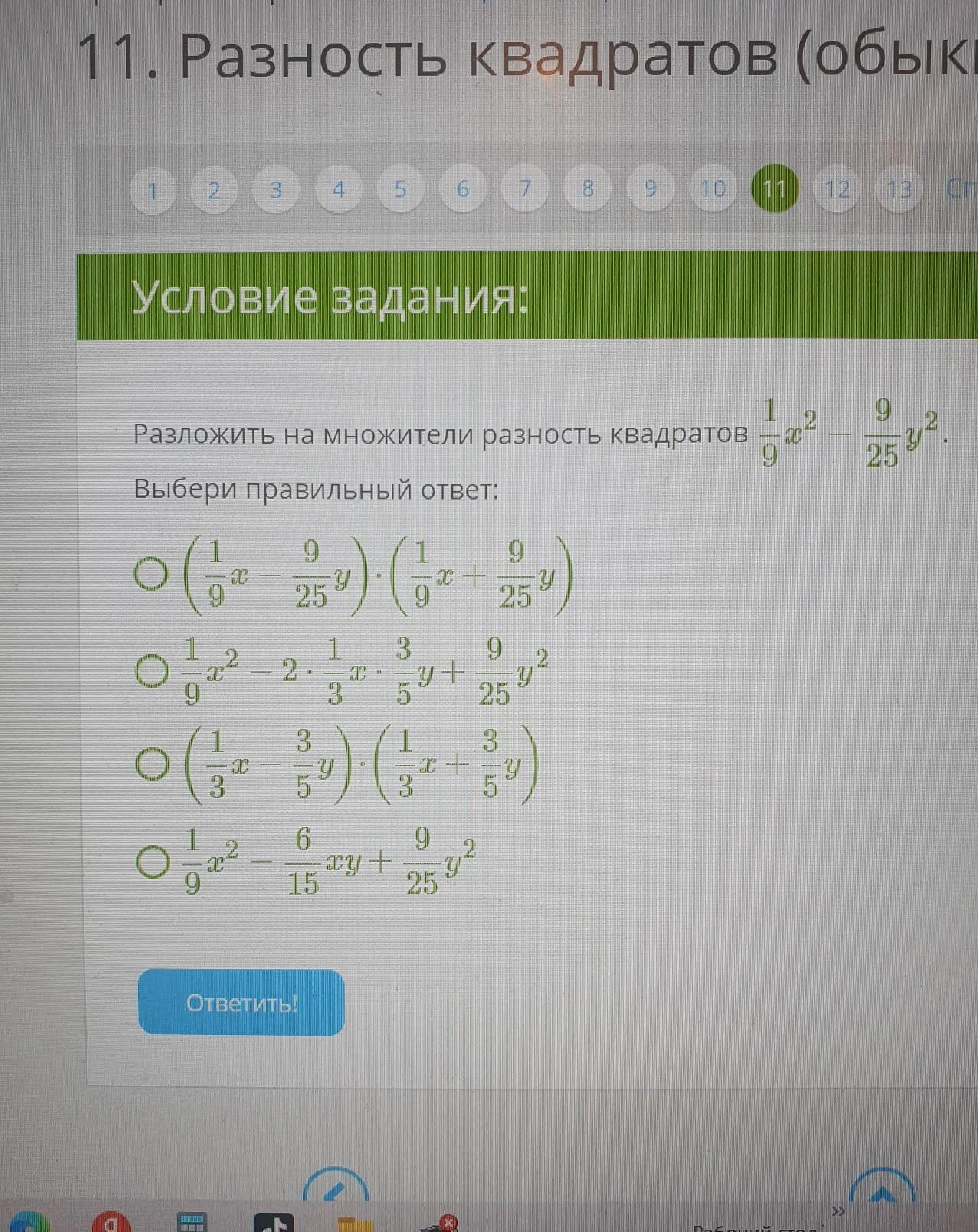 1/9×x²-9/25×y²=(1/3×x+3/5×y)(1/3×x-3/5×y)