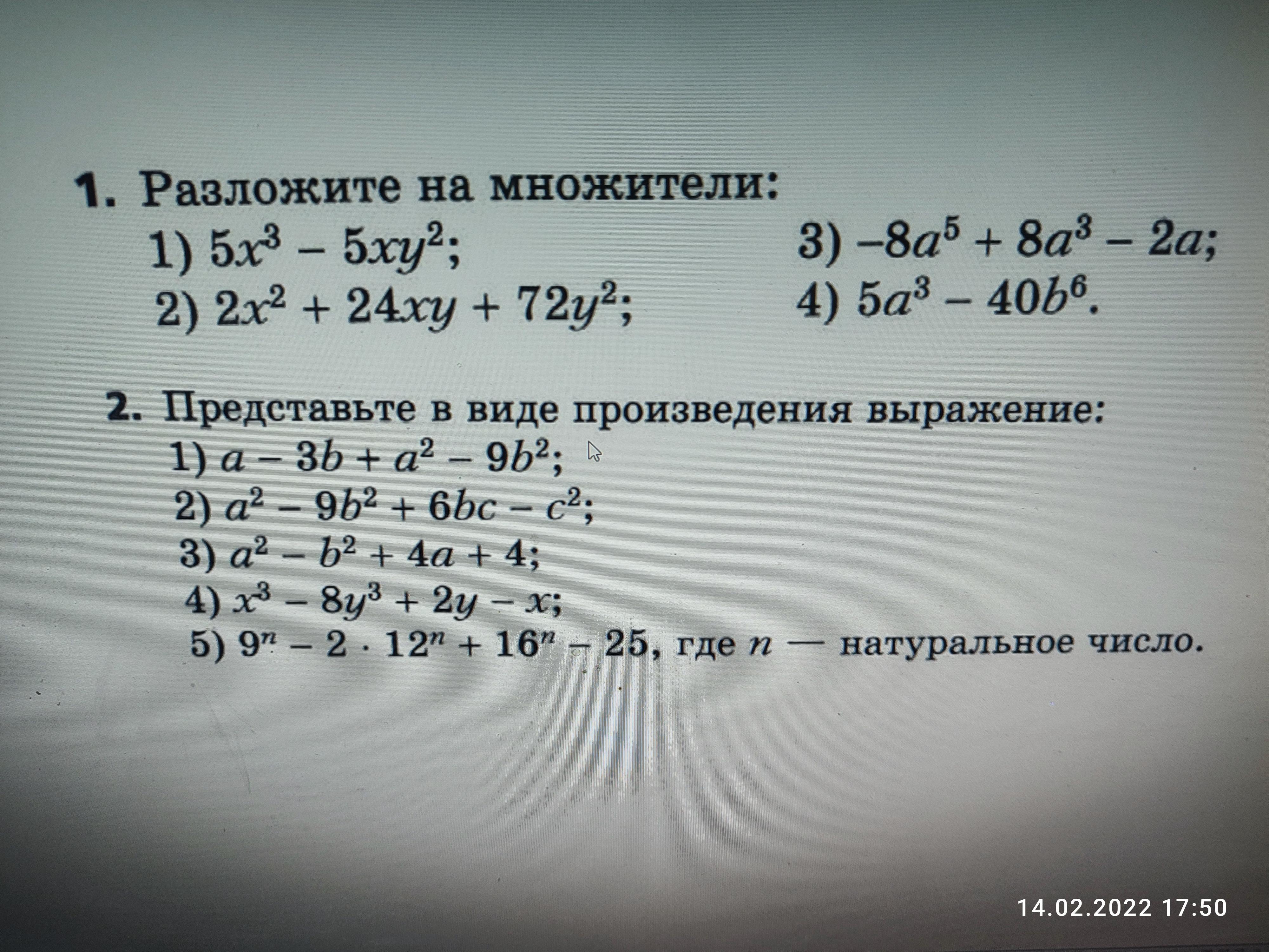 1. 1) 5x*(x-y)*(x+y)