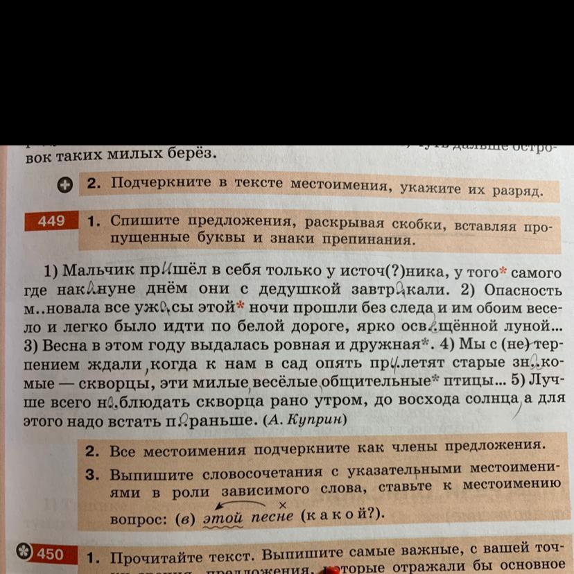 449 1. Спишите предложения, раскрывая скобки, вставляя про-