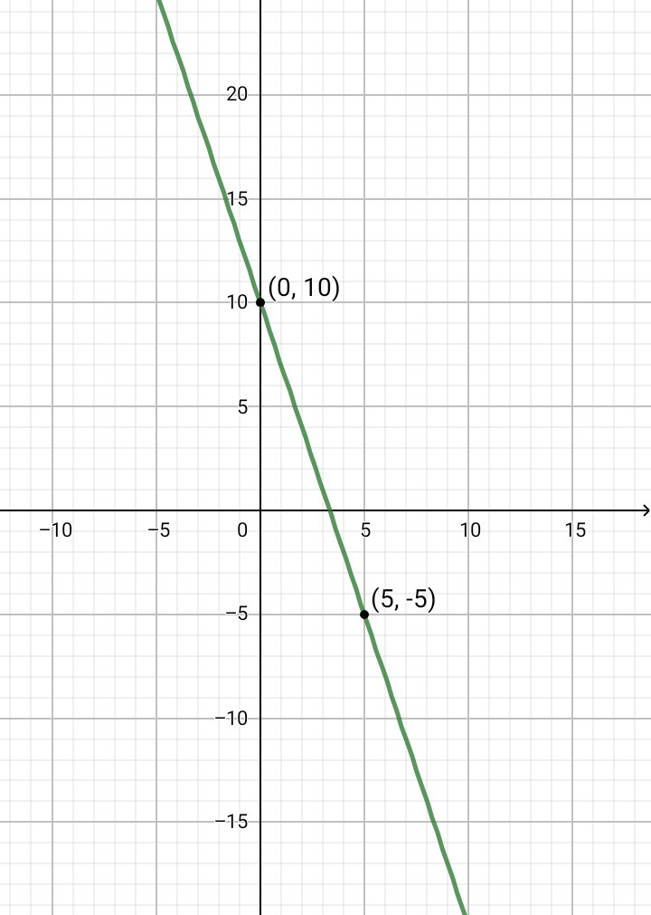 б) 3х + у = 10 ⇒ у = - 3х + 10 ( зелёная прямая )