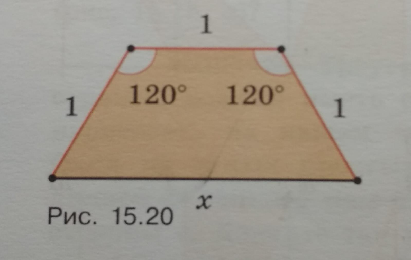 Проведем перпендикуляр из углов по 120 градусов. Отрезок, образованный перпендикуляром, равен 0,5, противоположный тоже равен 0,5, а пространство между ними равно 1.Значит, сторона х равна 2