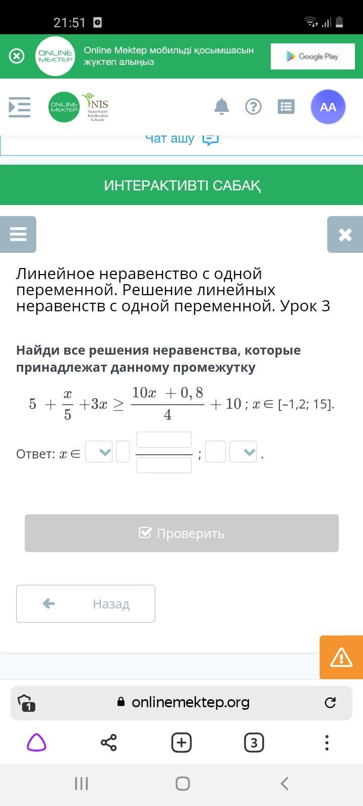 Но отрезку [-1,2 ; 15] принадлежат решения [7 3/7; 15]